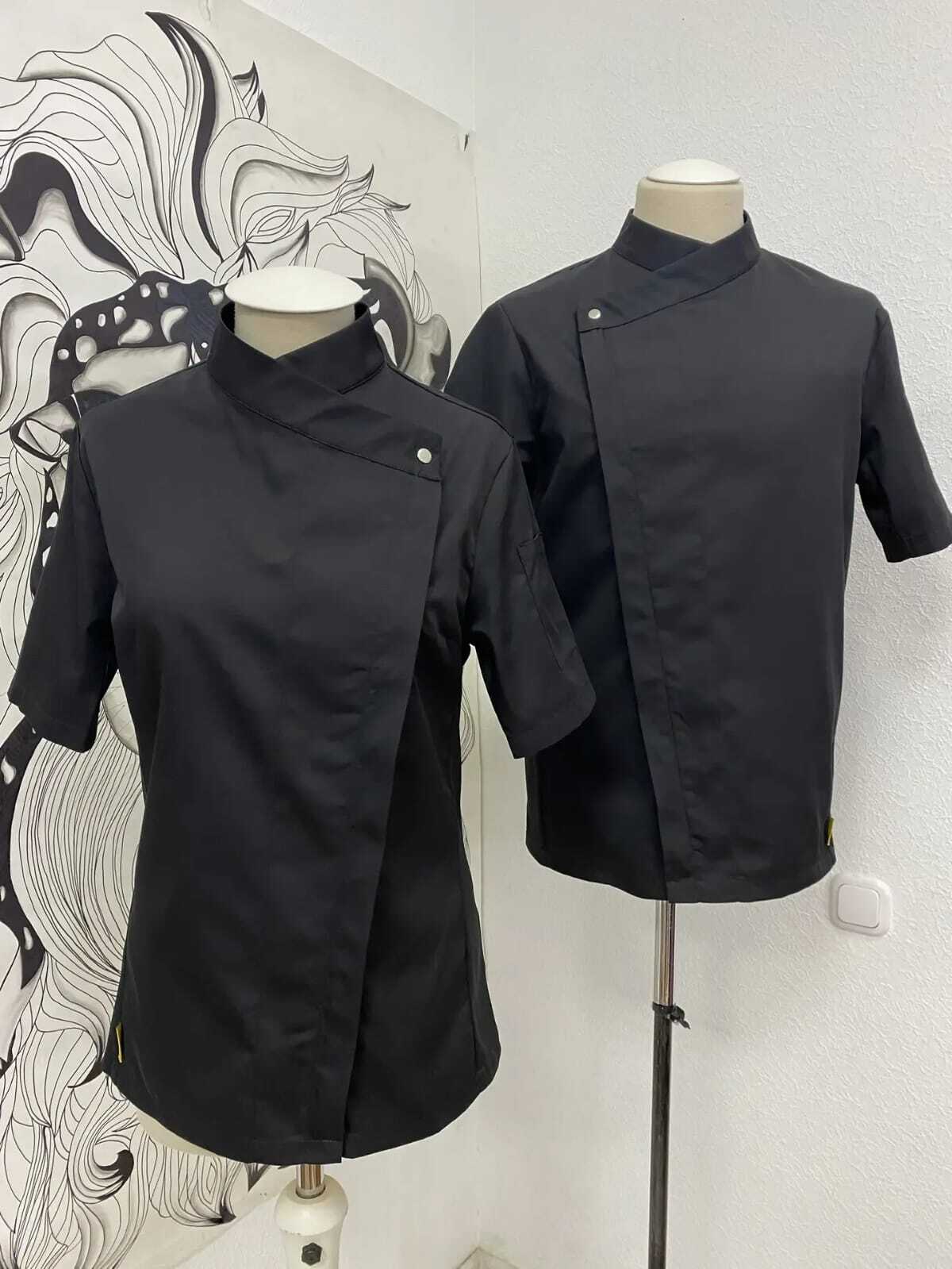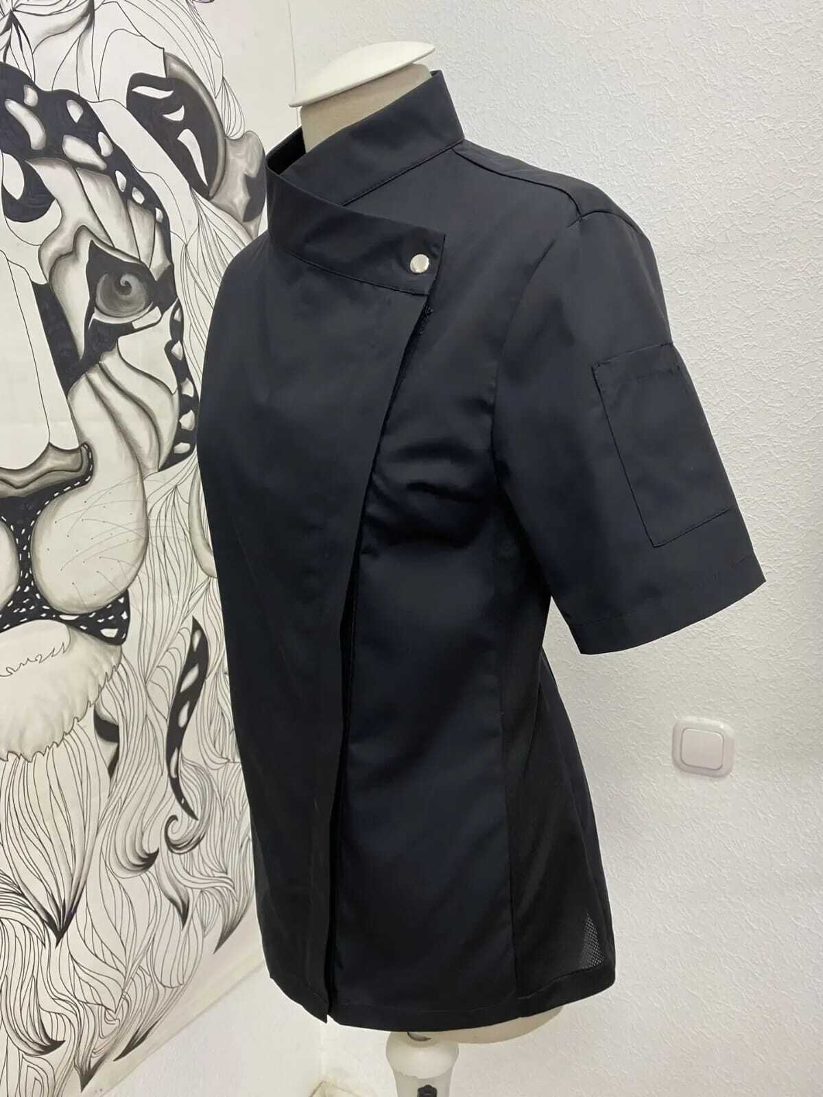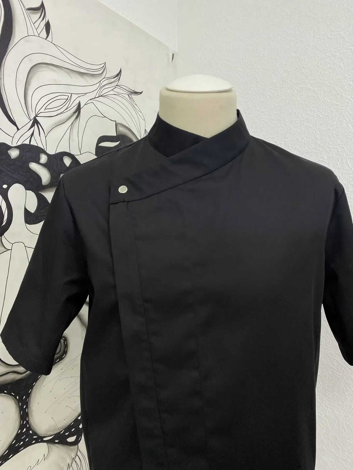 Китель поварской двубортный на молнии. Выполнен из профессиональной прочной ткани. По бокам эластичные вставки. Рукав на выбор: 3/4, короткий или длинный. Воротник – стойка. На спинке складка для свободы движения. Для максимального удобства сошьем под Ваш рост.